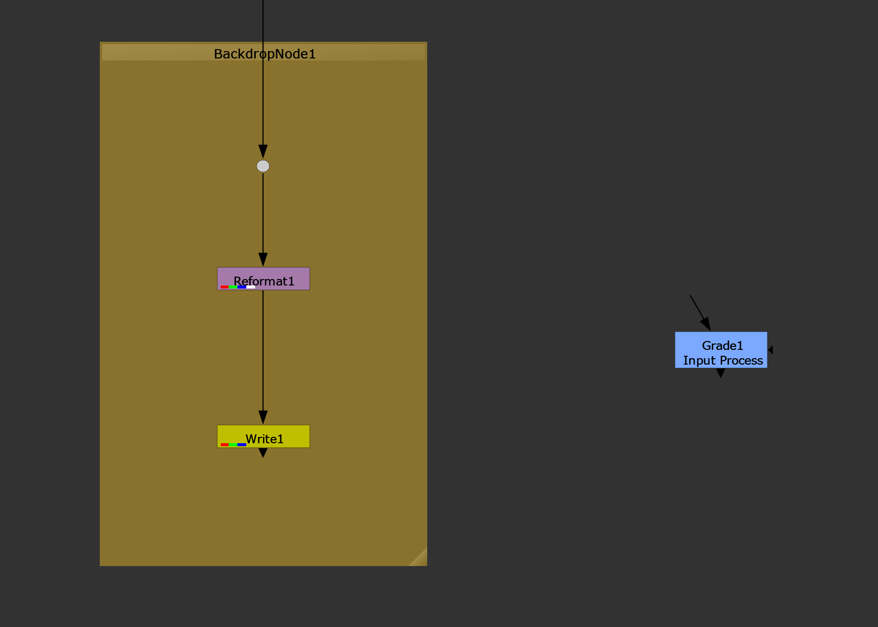 Let’s start by making a grade node, keep it disconnected from everything. I like to put my Input Process nodes near the output, and give them a label so people don’t delete them on me.