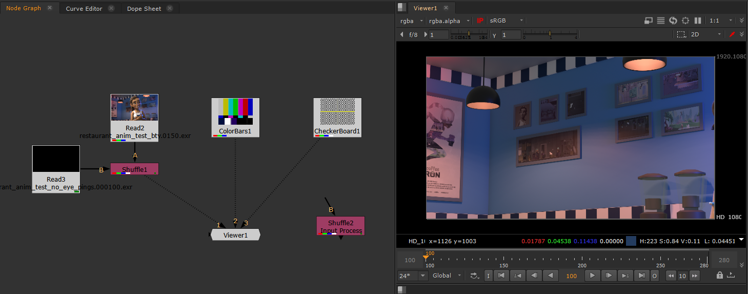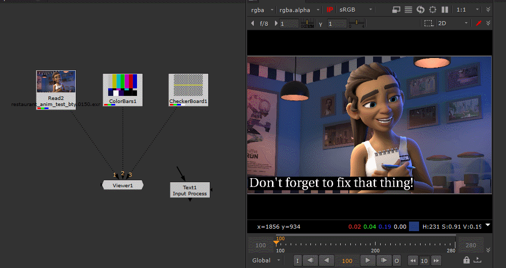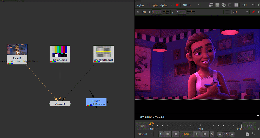 You can think of Input Process as adding an invisible node between your viewer and whatever it is looking at. It can be any kind of node that alters the image, so the potential is quite large! Imagine not having to drag around a LayerContactSheet, LensDistortion, or Shuffle node anymore. Your viewer will just act like those nodes instead!
