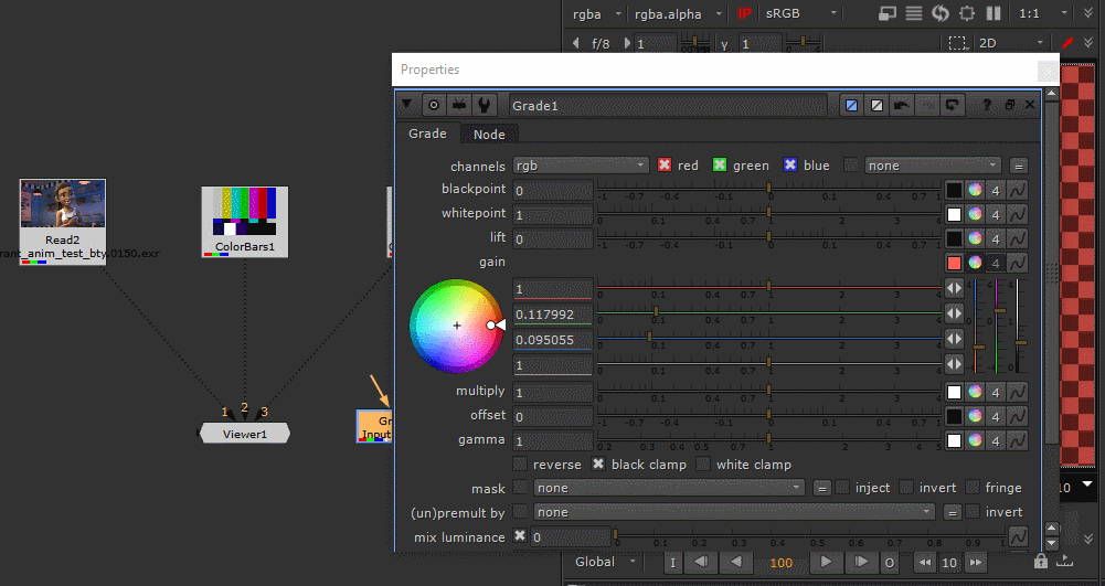 When working with unpremultiplied data, sometimes the edges of things can get distracting. Use a premult as an Input Process to remove that extra information as you work, but still keep all the benefits of working with unpremultiplied data