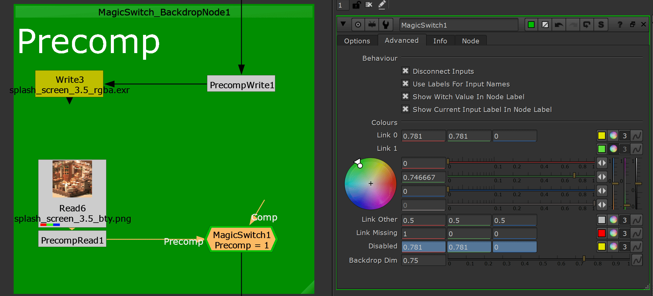 Backdrop Dim: The amount to darken the "MagicSwitch_BackdropNode" colour compared to the values set above
